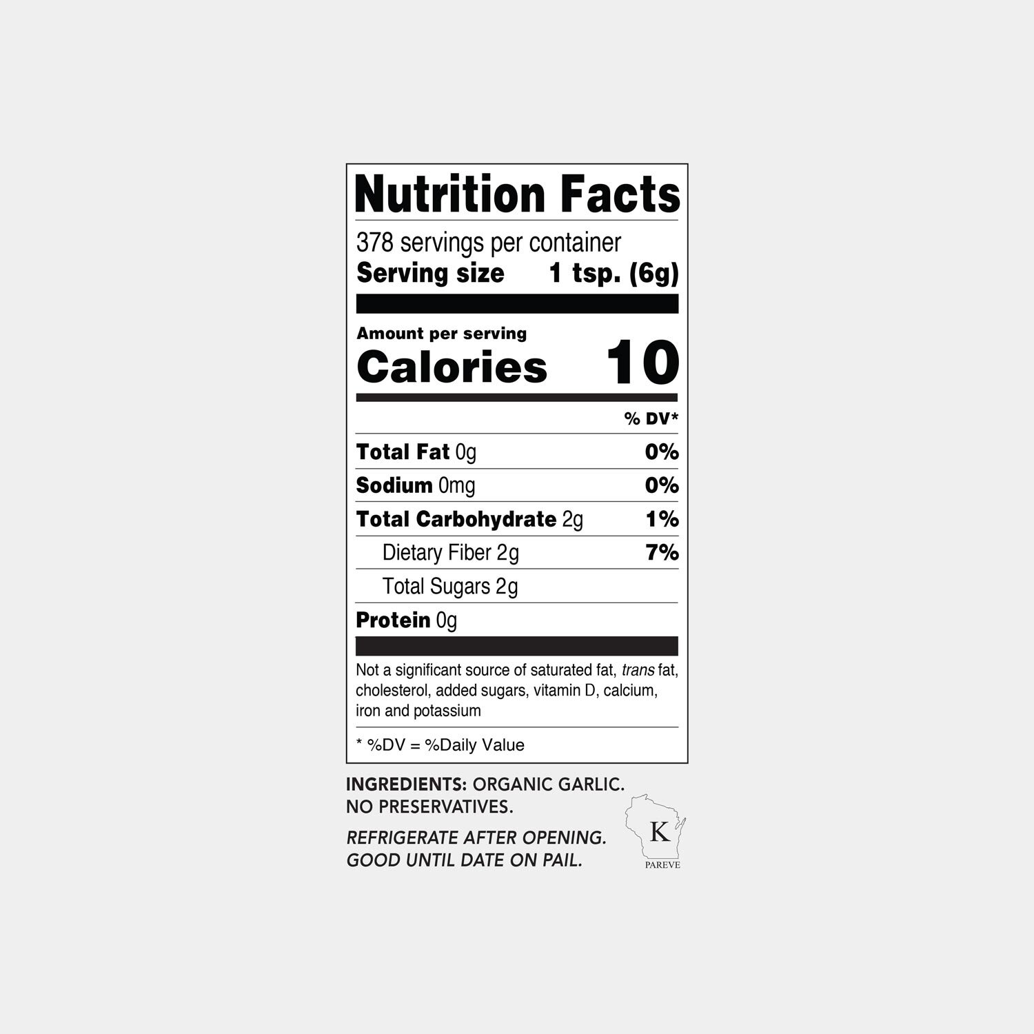 Organic Garlic, Water. No Preservatives. Refrigerate after opening for best results.